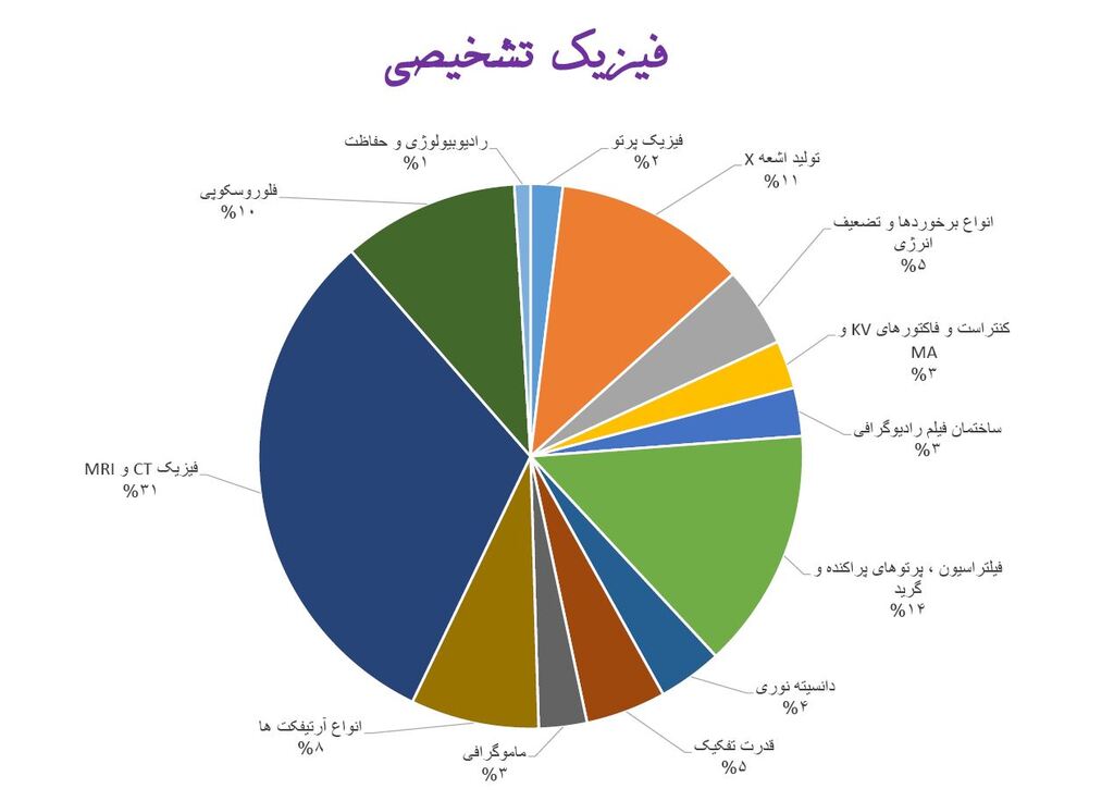 توجه: داوطلبان عزیز توجه داشته باشد که رشته تصویربرداری پزشکی فقط 6 دوره برگزار شده در نتیجه جامعه آماری کم می باشد و زیاد نباید به این آمار استناد کرد؛ ولی کلیات سرفصل های دروس در آزمون ارشد همین بودجه بندی را دارند: